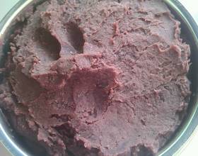 红豆提前一晚用清水泡好,第二天拿电饭锅煮熟,倒出滤干水分用料理机打成这种泥状(实在不好意思,前面几道工序忘记拍照了,下次再做再补发)