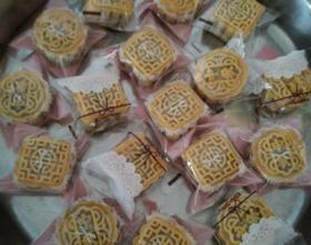- 8. 预热烤箱190度,在月饼上喷点水,放入烤箱30分钟,(放入十分钟左右,取出来刷上蛋黄液,再放入),注意上色程度,