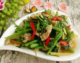 茼蒿摘洗干净,肉切丝,葱姜蒜辣椒切片