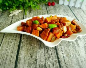 开大火,将锅烧热,锅热后放入油,油五成热时放入煮好的五花肉,变炒出一部分油。