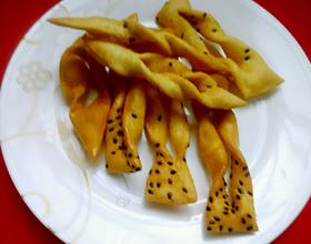 上锅倒油烧至七八分热下麻叶,大火快速炸至变黄