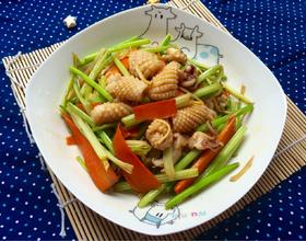 汆烫过的鱿鱼再炒,很容易熟。加配菜与调料翻炒速度要快,以免鱿鱼不嫩。