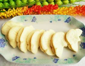 用小水果刀拉出一道道的印子。并用刀背在半圆形的两边往里推一下。下面中间部位用手捏一下。