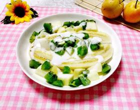 2、也可以把香蕉横着立起来,放上好吃的水果啊干果之类的。