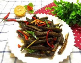 放入红尖椒和泥鳅,加一勺料酒、一勺生抽和一勺鸡精翻炒均匀即可出锅
