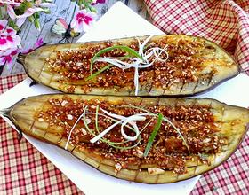 - 5. 涂好酱料的茄子放烤箱180度烤半小时
