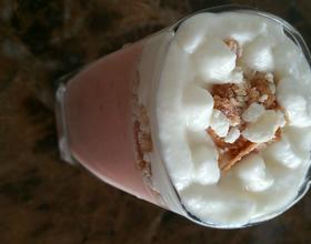 先放一层蛋卷碎,然后挤入安慕希,再放蛋卷碎和旺仔小馒头