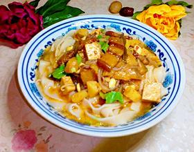 - 23. 把面捞入碗里,再把图12炒好的臊子菜舀两勺放入面上面。就绊均匀可以品尝了