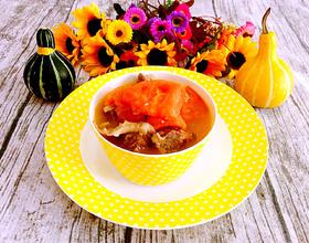 留一部分的牛腩和汤,倒入西红柿,加盐炖十分钟