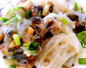 把煮好的调味汁倒在用开水烫过的粉丝上