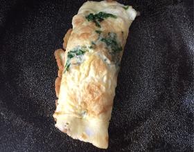 将鸡蛋打散,倒入电饼铛中,摊成饼状并撒上香菜,休息不要把饼弄破