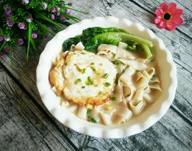 煎鸡蛋的时候不要急着翻面,待一面煎凝固后再翻动,用猪油煮出来的面条更鲜更香哦