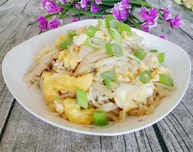 - 10. 加生抽 盐,金针菇有点软塌时,加入炒好的鸡蛋炒匀盛出