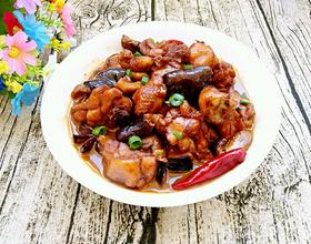 - 6. 翻炒至颜色变得金黄,加入葱段姜片,花椒,八角,干红辣椒炒出香味