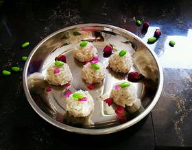 同样的方法,做完所有的丸子,盘子里抹上薄薄一层油,摆上丸子