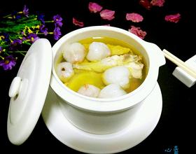 炖一个小时打开放入荔枝肉,盖上盖子接着再炖一个小时