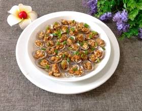 - 9. 蒸锅放入适量清水烧开后,放入蒜蓉花蛤粉丝蒸五分钟。
