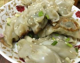 包好之後,下鍋煎至外皮微黄,放水,盖好,直至水干。