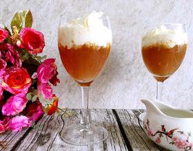 2、淡奶油打发到8成,可以在红茶中自然浮起。