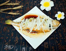 - 7. 取出黄瓜鱼,倒出汤汁。把姜片,小葱挑出,淋上少许蒸鱼鼓油