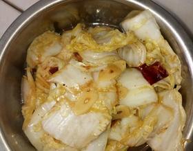 - 4. 再次倒入娃娃菜,翻炒两下加入陈醋,先不要放盐,不然口感就不脆了
