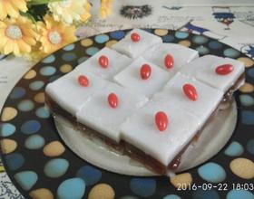 拿出盘(盆)凉一会儿,表面全部凝结。 倒入姜糖汤(倒入时要再搅拌一下)。再蒸至凝固。 出过后室温下放凉。