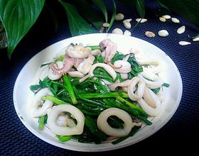 墨鱼用开水焯好后炒的时间就不需要太长。