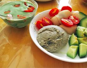 豆泥装盘,摆入圣女果,牛油果,可随个人喜好淋上蜂蜜或沙拉酱(高脂高热的东西我个人不太推荐哈,但不爱吃牛油果的人配合蜂蜜风味很好)豆泥蘸酸奶简直美味。