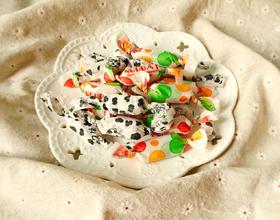 关于切条的形状大小自由发挥,个人认为细长点包出来效果很好,我的这个方子做出来有60多颗糖左右,因为我用的是提子味棉花糖做出来颜色不白,可以用原味白色的棉花糖最好