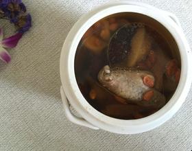 把鸽子放入炖盅,红参(切片)、红枣、枸杞子、姜片放入炖盅