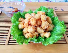 - 7. 锅中加适量的油,油温热放入裹好的鸡块,用小火炸至两面金黄即可!
