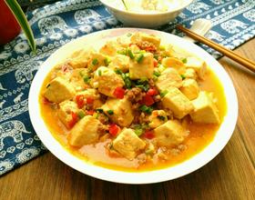 备齐所需食材。豆腐切2-3厘米的小块,葱蒜切碎末备用。