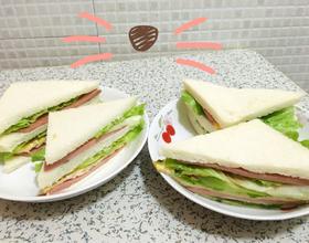 - 11. 最后再铺一层生菜和吐司,用刀从对角处切开