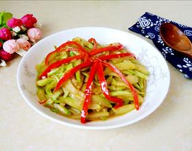 起油锅,爆香蒜末,倒入红椒丝炒一会。