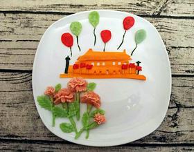 黄瓜皮刻纪念碑,摆好蒸熟的小国旗~