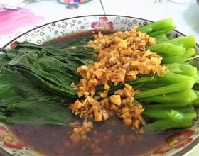 一分钟后,将蒜末汁淋在菜心上即可