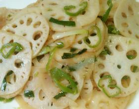 锅热加油,油热放入葱、辣椒、盐煸炒两下,放入藕片、酱油、蔬之鲜炒至入味即可出锅。