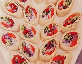 - 6. 把切好的蔬菜卷,摆在盘子上。