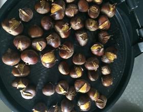每课栗子上划好小口子。铺上水,盖上电饼铛,十五分钟左右便可食用