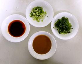 将酱搅拌均匀,根据个人口味加小葱、香菜、辣椒油