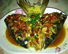 3鱼蒸半熟后铺上刚煮好的香料,加入蒸鱼豉油再蒸五分钟入味后即可,再加入自己喜欢的装饰花样