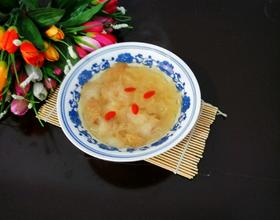 银耳必须泡发四个小时以上。梨可以去皮,因为我有点上火,没有去皮。