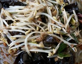 炒锅热油炒芽菜浇头。汤锅加水煮粉丝。