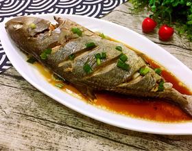 油甘鱼去内脏器官去腹黑洗净后在表面各切几刀,姜切丝,葱切葱花备用