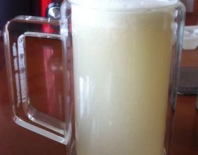 一杯冰冰的梨汁就可以喝了,一口下去,冰凉凉的,舒服。