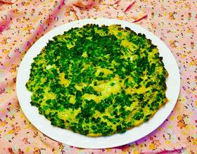 热锅凉油,中火烧热放入葱姜蒜爆香,放入蛋液煎制。