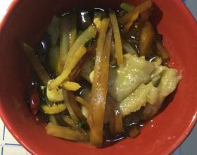2芥菜肉丝一定要冷水就开始下锅,味道更加。