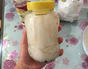 - 9. 然后就是加入白糖、白醋、凉开水和盐,加的量根据自己的口味来,喜欢酸的多加醋,喜欢辣的可以把辣椒干切碎加进去(一个萝卜需要两个瓶子)