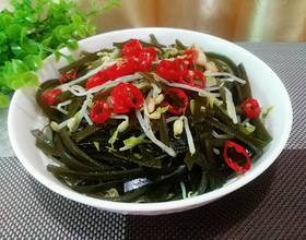 锅内热油放入大蒜辣椒爆香淋在海带豆芽上即可