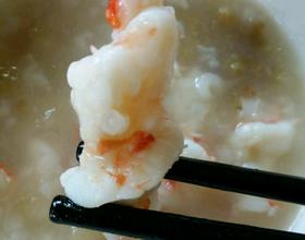 待米粥煮开后,放进猪瘦肉、虾块一同煮开,再加进大蒜、酱油、盐,一锅香甜美味的虾粥便完成了!